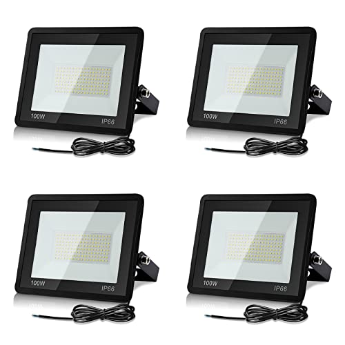 toobettp Utomhus LED-strålkastare 100 W, 10 000LM LED-strålkastare utomhus, 6 000 K, kallvit, vattentät, IP66, utomhusprojektorer för garage, trädgård, innergård, park, 4 st
