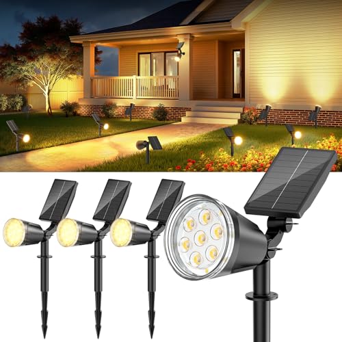 GEARLITE Solcellslampor för utomhusbruk trädgård, varmvit sol LED-strålkastare utomhus med 1 500 mAh batteri, 1 200 lumen solcellslampor för utomhusbruk med IP65 vattentät för trädgårdsdekoration