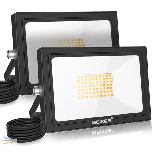 MEIKEE 60 W LED-strålkastare utomhus 2 700 K varm vit 5 200 LM jätteljus LED strålkastare IP66 vattentät LED snedstrålkastare utomhusstrålkastare för trädgård, bakgård, uppfart, dörrar, garage, hall 2