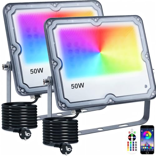 Indmird RGB strålkastare 50W RGB LED-strålkastare utomhus med Bluetooth APP-kontroll IP66 Vattentät Smart RGBW färgskiftande dimbar strålkastare Stämningsfullt ljus för trädgård, fest, scen