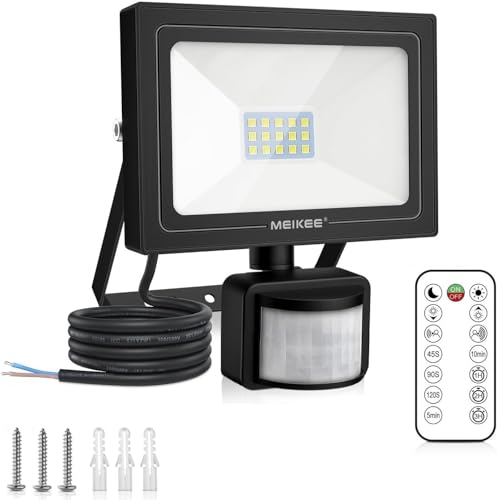 MEIKEE 15W LED-strålkastare med rörelsedetektor utomhus 150-1200 LM 6500K kall vit IP66 vattentät med fjärrkontroll timing-funktion ljusstyrka justerbar strålkastare för trädgård garage gård
