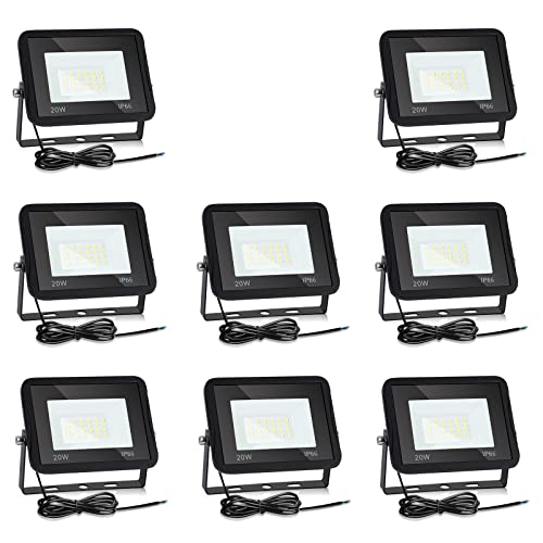 GERMINA LED-strålkastare utomhus 20 W, 2000 lm 6 4 000 K neutrala superljusa LED-lampor utomhus, vattentät LED-projektor IP65 översvämningsljus för terrass, trädgård, gård, park, garage, hall