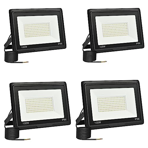 Lospitch 4PCS LED-strålkastare utomhus, 100W utomhusspotlight, utomhus, 8500LM Superbright Outdoor LED-strålkastare, IP66 LED-strålkastare 6000K kallvit, för trädgård, garage, idrottsplats
