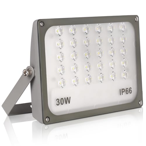 GERMINA LED-strålkastare utomhus 30 W, 3 000 lm 6 400 K neutrala superljusa LED-lampor utomhus, vattentät LED-projektor IP65 översvämningsljus för terrass, trädgård, innergård, park, garage, hall
