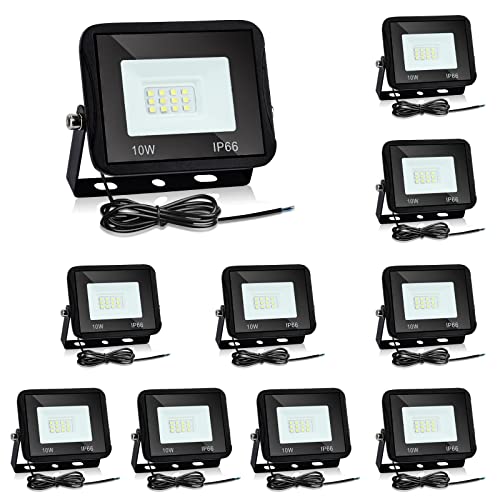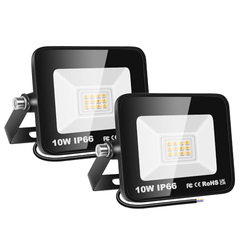 Izrielar 10 x LED-strålkastare utomhus, 10 W LED strålkastare jätteljus 900 LM strålkastare, utomhusstrålkastare 3 000 K varm vit IP66 vattentät utomhu, utomhusstrålkastare för trädgård,
