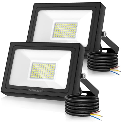 MEIKEE 60 W LED-strålkastare utomhus, 6500 K, kall vit, 5200 lm, jätteljus, IP66 vattentät, utomhusstrålkastare för trädgård, bakgård, uppfart, dörrar, garage, hall