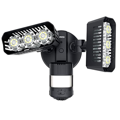 SANSI LED-strålkastare med rörelsedetektor utomhus, 2 700 LM 5 000 K dagsljus vit superljus utomhu med justerbara 2 huvuden, IP65 vattentät strålkastare säkerhet för garage, gård, svart