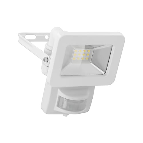 goobay 53878 LED strålkastare rörelsedetektor utomhus 10 W/PIR sensor utomhusstrålkastare IP44/neutralt vitt ljus 850 lm/LED strålkastare strålkastare väggmontering/trädgårdsstrålkastare/vit