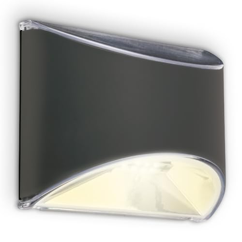 BRILONER – LED-vägglampa med indirekt ljus, platt, neutral vit ljusfärg, utomhu, LED-strålkastare utomhus, utomhu, utomhusvägglampor, 19 x 19 x 2,8 cm, svart