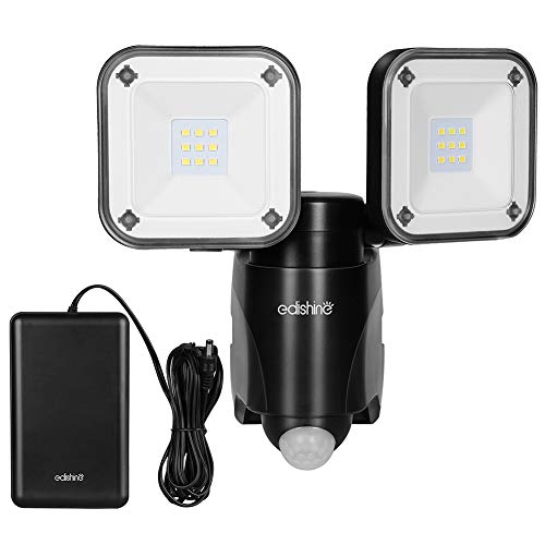 EDISHINE Batteri LED-strålkastare med rörelsedetektor utomhus, trådlös batteridriven utomhusstrålkastare, justerbara dubbla lamphuvuden, IP44 vattentät, 800 lumen, 6000 K, för garage, gård, terrass