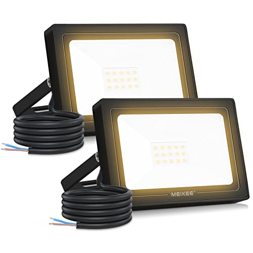 MEIKEE 15W LED-strålkastare utomhus 2700 K varm vit 1200 LM jätteljus IP66 vattentät LED snedstrålkastare utomhusstrålkastare för trädgård, bakgård, uppfart, dörrar, garage, 2PCS