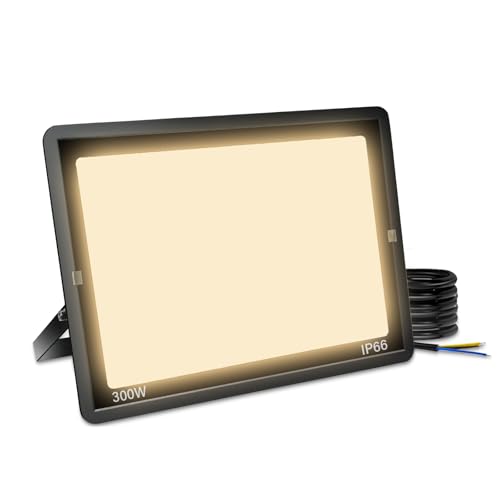 LED-strålkastare utomhus 300 W varmvit 3000 K, Blivrig 30 000 LM LED strålkastare utomhus, IP66 vattentät strålkastare, för trädgårdar, gård, garage, lager