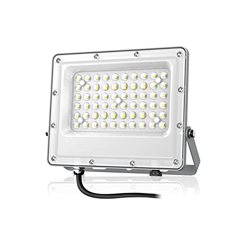 Izrielar 50 W LED strålkastare utomhus, 4250 lm strålkastare 6000 K kallt vitt ljus superljus strålkastare, IP66 vattentät, utomhusstrålkastare perfekt utomhu för utomhus trädgård garage,