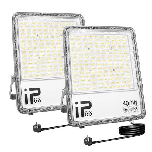 AUXTINGS Utomhus LED-strålkastare med plugg, 2 st 400W LED-strålkastare utomhus 40000LM 6000K kall vit IP66 vattentät LED-strålkastare utomhus för trädgård, garage, innergård, kvadrat, terrass