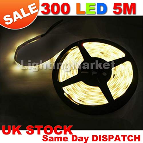 JnDee(TM) Warm White 5M (16.4ft) 300 LED Strip LED Tape Light Flexiable TAPE RIBBON/ 5 Metres with 300 SMD LEDs DC 12V-- IDEAL FOR KITCHENS, HOME LED LIGHTING, BARS, RESTAURANTS, ETC .