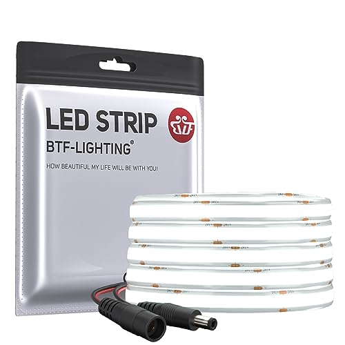 BTF-LIGHTING FCOB Flexibel Hög Density LED Strip 5M 480LEDs/M Vit Kall 6000K 10W/24V IP65 Vattentät Dimbar COB LED-ljus för DIY Dekoration Rum(Innehåller inte mat&styrenhet)