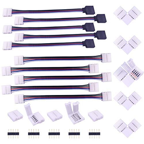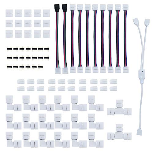 LocisneOutlet Locisne 4-stifts LED-remsa distributör anslutningsklip-sats, LED-remsa förlängningstillbehör set LED-tejp ljus vit anslutningsadapter för 10 mm 4 stift 5050 RGB LED remsa