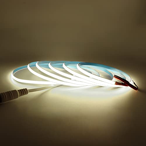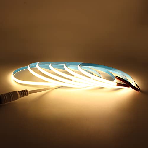COB LED remsa 24V Varmvit 3000K 5m, Arote COB LED Strip LED-tejp 5mm Bredd Dimbar High Density Light DIY 384LEDs/m Utan strömförsörjning IP20 för sovrumskök Heminredning