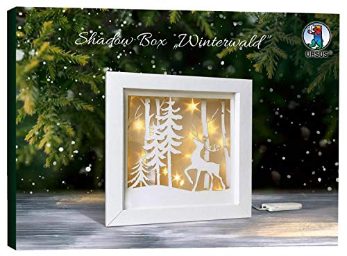 Ursus 21510001F – Shadow Boxes vinterskog, ca. 19 x 19 x 4 cm, pysselset med 3 ark pysselkartong, 3D-stjärneffektfolie, LED mikroljuskedja, tejp, inklusive pysselinstruktioner, vit