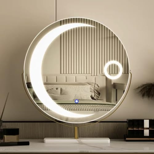 Desktop LED-spegel Sminkspegel, 40CM/45CM Sminkspegel, Laddningsbar Touch-dimmer Bärbar Bordsspegel, 3-färgs Ljus Ljusstyrka Justerbar (Color : Gold - Swivel, Size : 45CM)