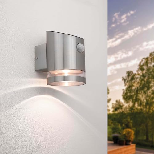Ledvion Solar Elara, LED vägglampa utomhus grå rund, RVS vägglampa med sensor för en RVS 3000 K down, utomhusvägglampa, utomhu, IP44