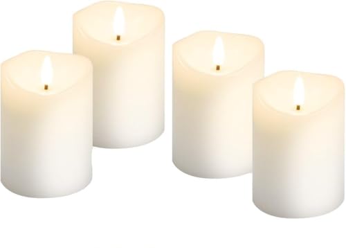 ToCi 4 x LED-ljus, vit, Ø 7,5 x 15 cm – äkta vaxljus flamlösa med rörlig låga och timer – blockljus med LED-ljus för advent, dekoration, gravljus, inomhus