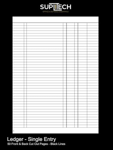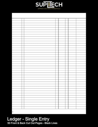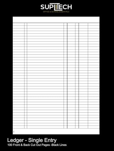 Ledger – Single Entry: 100 (50 Front and Back) 8.5" x 11" White Pages with Black Lines