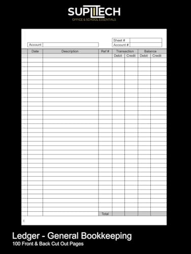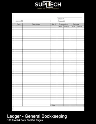 Accounting Ledger: 100 (50 Front and Back) 8.5" x 11" White Pages with Black Lines