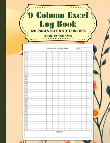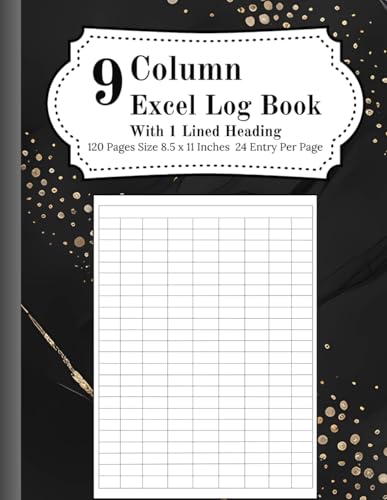 9 Column Excel Log Book With One Lined Heading: Supplies Ledger Book to Record any Types of List and Information, Blank Column Chart, Blank Table ... Grid, Empty Graph, 120 Pages 8.5 x 11 Inches