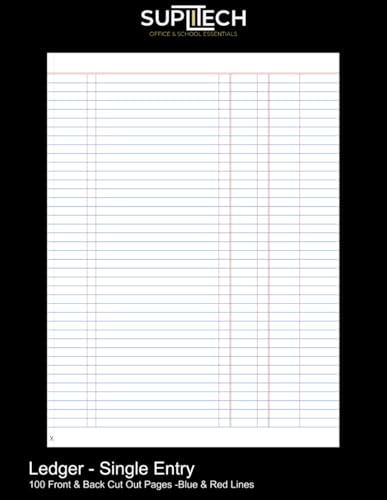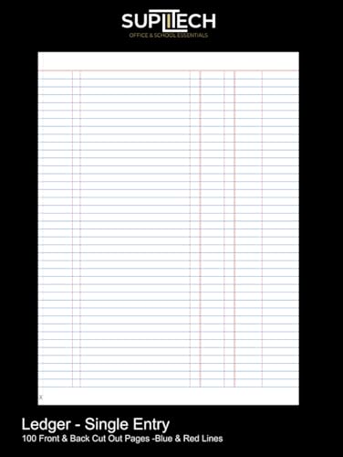 Ledger – Single Entry: 100 (50 Front and Back) 8.5" x 11" White Pages with Blue & Red Lines