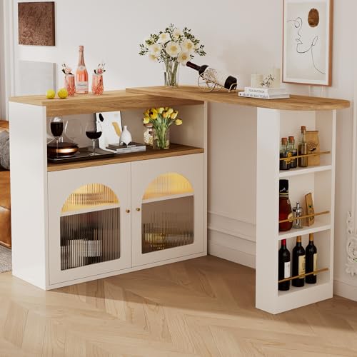 Modernt utdragbart barbord, matbord med förvaringsutrymme, ståbord, bistrobord, roterbart, för matsal, med 1 m lång LED-list (justerbar ljusfärg), 138–193 x 39 x 105 cm (vitt)