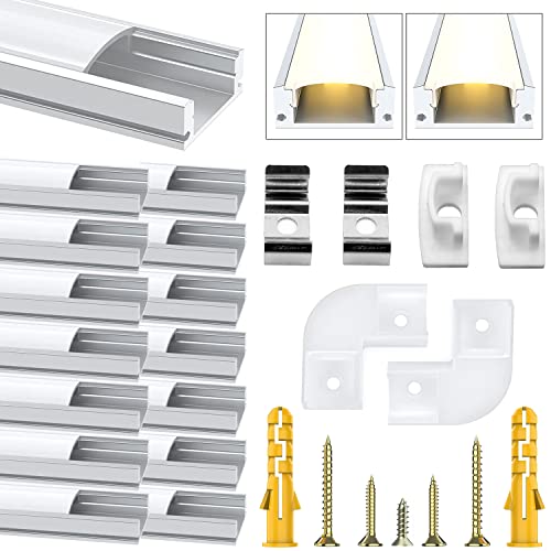 Chesbung 15-pack LED-aluminiumprofil för LED-ränder/ränder/remsa, 1 m/3,3 fot V form LED aluminiumprofil LED-list kanal med mjölkvitt lock, LED-diffusor med 90 graders hörnkontakter