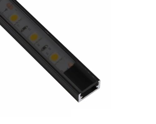 ledomec 1 m LED ALU profil smal LED-list (14 x 7 mm) i svart med lock (1 m svart – skydd svart)