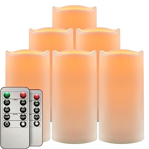 Yeelida Utomhusset med 4 flamlösa vattentäta LED-ljus med fjärrkontroll, timer batteridriven tvätt oljeeffekt flimrande plast (elfenben, 7,5 cm x 10 12,5 15 17,5 cm)