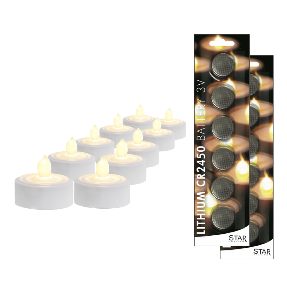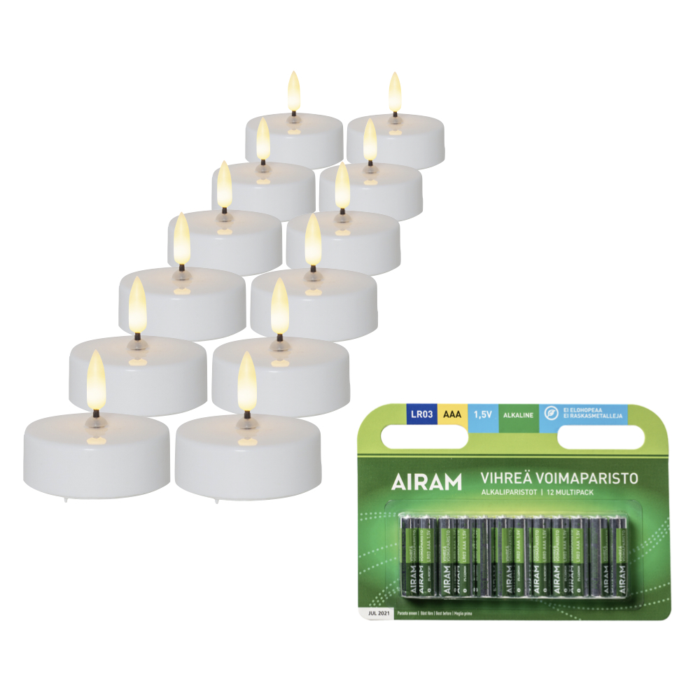 10st värmeljus Paulo med 12st reservbatterier, realistiska LED-ljus med timer 5st 2-pack