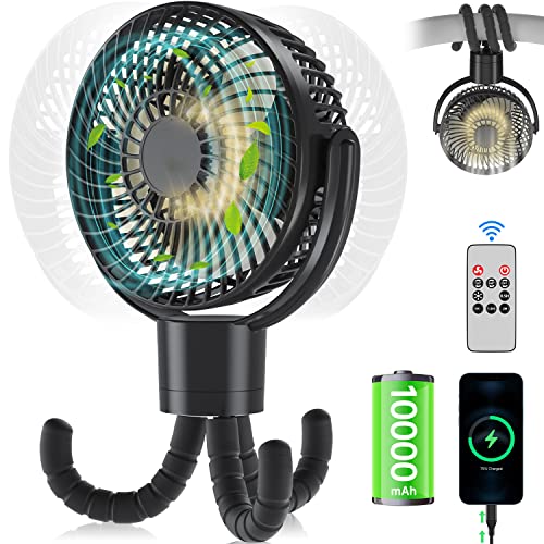 Swing 360° Portable Fläkt fjärrkontroll bord, 10000 mAh Mini Tyst USB-fläkt med LED-ljus, 4 nivåer, Timer, Camping Fläkt stationär uppladdningsbar 56H
