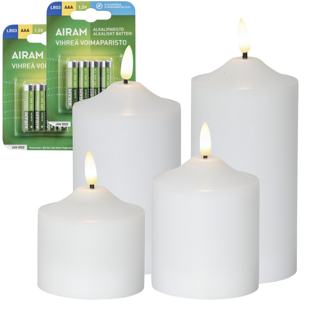 Paket med 4st Blockljus Flamme realistiskt LED-ljus med timer