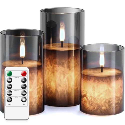 salipt Glas Flamsäkra ljus som Flimrar med Fjärrkontroll, Batteridrivna LED-ljus med Timer, Realistiska ljus Batteridriven vax Dekorativa Ljusuppsättningar, Set om 3 - Gråa
