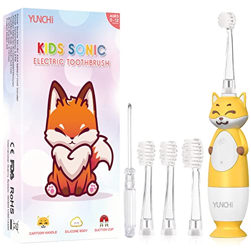 Elektrisk tandborste barn från 1–12 år baby silikon barntandborste elektrisk småbarn sonisk tandborste med LED-ljus med timer 4 mjuk borstborste för pojkar flickor YUNCHI K3 (gul)