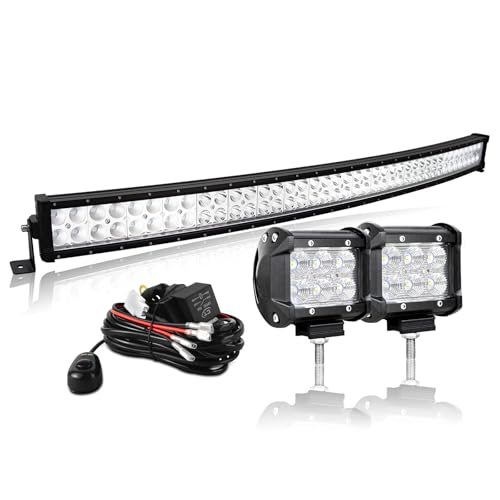 AUXTINGS 106 cm 240 W böjd LED-ramp + 2 st 10 cm arbetsljus LED 12 V LED-projektor, vattentät dimljus, LED-dimljus, arbetsljus med ledningar för bil, lastbil, traktor, SUV, båt