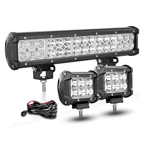 RIGIDON 38 cm 90 W led-ljusstång med 12 V ledningsnätsats, 2 st 10 cm 18 W spotlight, LED-arbetsstrålkastare, vattentät LED-ramp, för offroad fordon, lastbil, traktor, fyrhjuling, dimljus