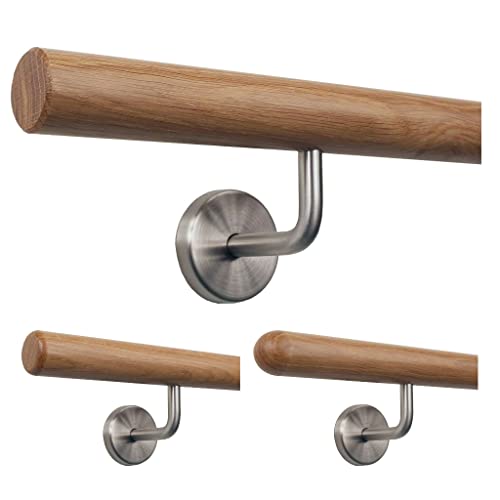 TIBU Ek trä ledstång räcke 0,3 m – 6 m, längd 30 cm, ändar helrunda fräsade och 2 raka hållare