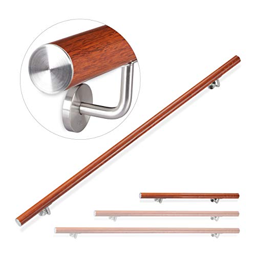 SELEWARE 26 tums ledstång i trä inomhus trappor ledstång väggmonterad ledstång med robusta metallskenor, barriärfri trappräcke för äldre, 3,5 cm rund