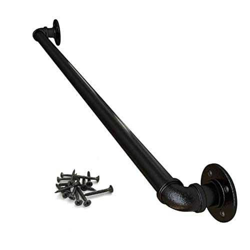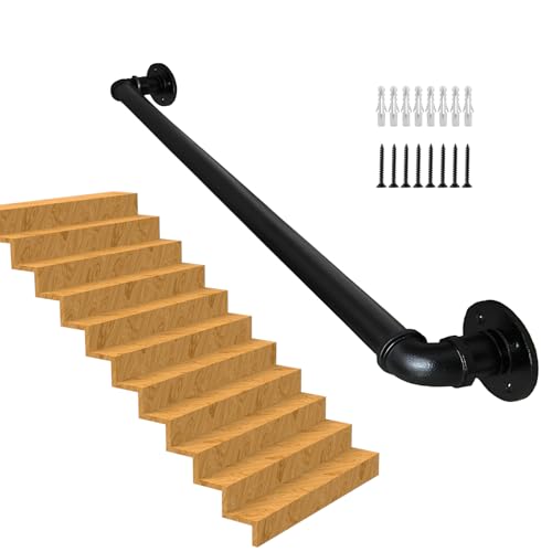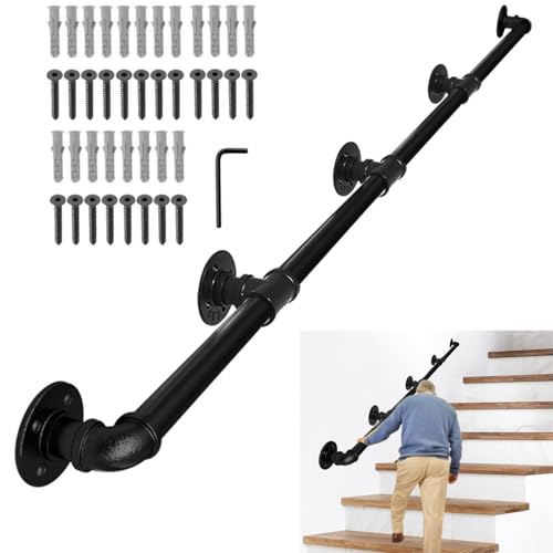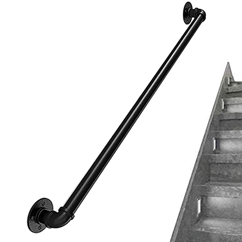 Gorssen Ledstång industriella rörledningar för trappor, väggsäkerhetsramp, heminredning, räcke, trappräcke för inomhus utomhus - svart, 180 cm