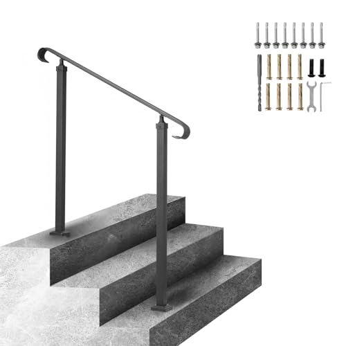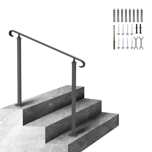 VEVOR Utomhus trappräcke, passar för 1 stegs övergångs smidesjärn ledstång, justerbart yttre trappräcke, ledstänger för betongsteg med installationssats, matt svart utomhusledstång