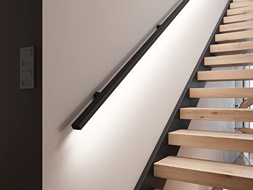 Sellon24® LED ledstång stål pulverlackerad svart 25 x 45 smal väggledstång räcke trappa (200 cm, svart RAL9005)