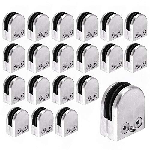 20 stycken glasklämmor rostfritt stål, glasklämmor, glasklämmor, justerbar glashållare för 6–8 mm glas, glasklämma glashållare för Balustrade, trappa, ledstång
