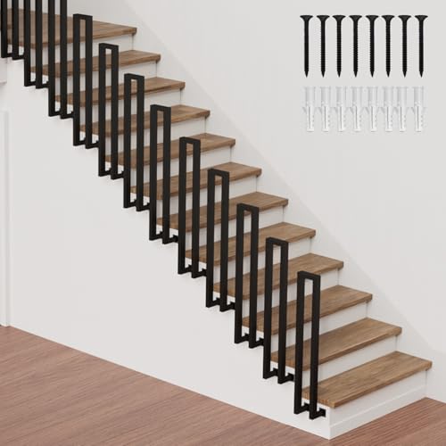 Trappräcke Inomhus, U-Formad Räcke Trappa, Räcke Utomhus, Ledstång Trappa, Metall Trappledstång för Villor, Balkonger, Korridorer, Lägenheter, Inomhus och Utomhus (Svart, 75x20cm)