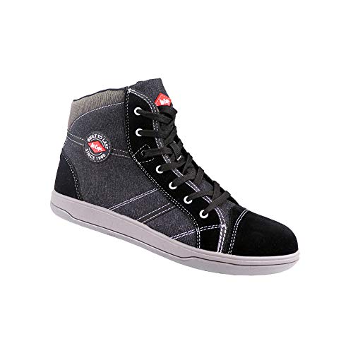 Lee Cooper arbetskläder LCSHOE101 mäns arbetssäkerhet retro hög topp säkerhetsstövel tränare med skyddande ståltåhätta och säkerhet mellansula S1P/SRA, UK 12 /EU 46, Svart/grå, 1