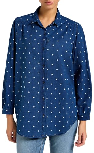 Lee Shirred Blouse skjorta för kvinnor, Prickad indigo, XL